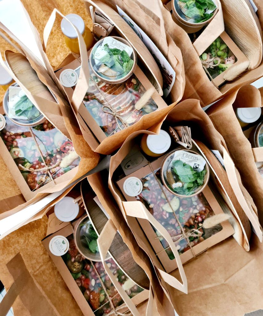 Op zoek naar volwaardige salads voor uw bedrijfslunch of evenement? Verwen uzelf, collega’s of uw gasten met gezonde en luxe handgemaakte salads vol pure ingrediënten gepresenteerd in een handige kraften salad box. Onze handige salad boxes zijn stijlvol verpakt in milieuvriendelijke biologisch afbreekbare kraftpapier met transparant raamvenster. Elke box wordt geleverd met milieuvriendelijk houten servies.
